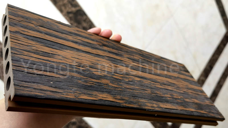 Yongte ha sviluppato la più recente tecnologia di co-estrusione multistrato per la macchina per estrusione di WPC, può ottenere Effetti del grano in legno a più strati sulla superficie del decking WPC