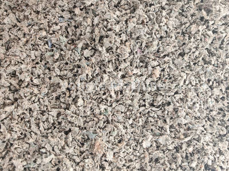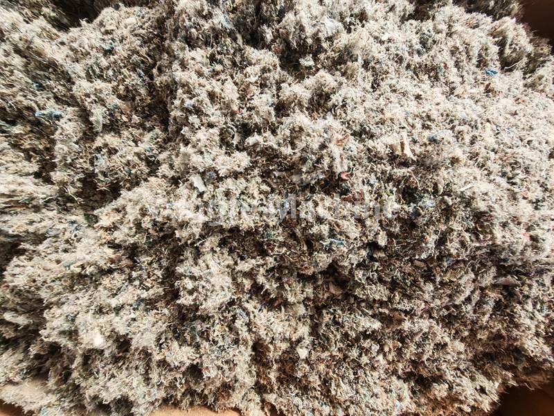 1, i vestiti di scarto vengono triturati, frantumati e convertiti in piccoli scarti di vestiti