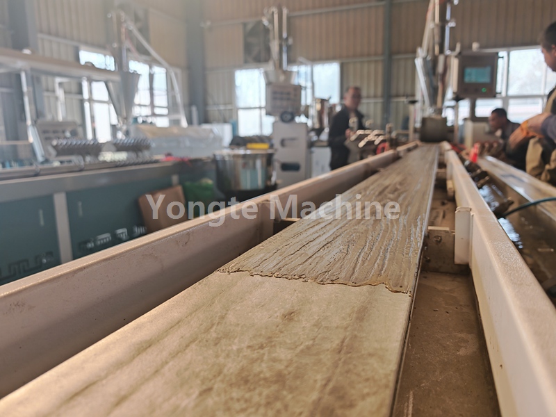 4, estrusione del materiale composito mediante estrusore bivite conico e stampo per decking WPC appositamente progettato,