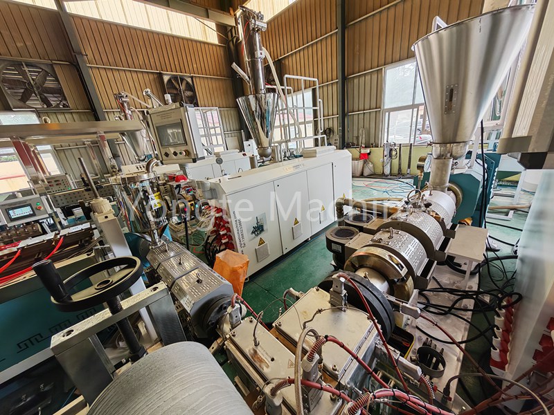 È dotato di un sistema di raffreddamento ad acqua veloce per i calibratori dello stampo e tavolo da raffreddamento naturale per il prodotto di co-estrusione.